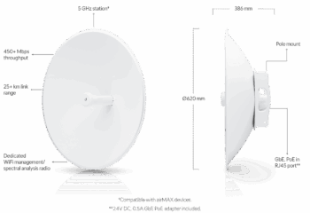 5 GHz WiFi antenna with a 450+ Mbps Real TCP/IP throughput rate.