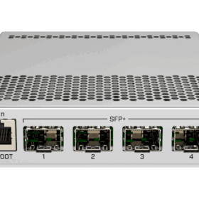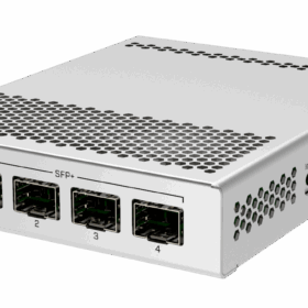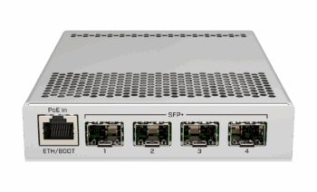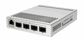 Five-port desktop switch with one Gigabit Ethernet port and four SFP+ 10Gbps ports