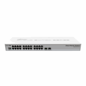 The MikroTik CRS326-24G-2S+RM is a 1U rackmount switch with 24×1 GbE ports and 2×10 GbE SFP+ uplinks, offering dual-boot (RouterOS/SwOS), advanced Layer 2 features, and fanless silent operation—perfect for efficient, flexible network management.