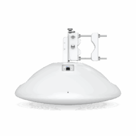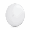 The Ubiquiti Wave LR (Long-Range) is a rugged 60 GHz point-to-multipoint station built for high-capacity, long-distance wireless links. It delivers up to 2 Gbps total throughput (1 Gbps duplex) and supports a link range of up to 8 km when paired with a compatible Wave AP. To maintain connectivity during adverse weather, it includes a 5 GHz Wi-Fi 6 backup radio. The unit features a narrow-beam, high-gain 46 dBi antenna, integrated GPS for alignment, and Bluetooth for easy setup via the UISP app. Designed for durability, its IPX6-rated body withstands harsh conditions, and it’s powered via passive PoE (48 V).
